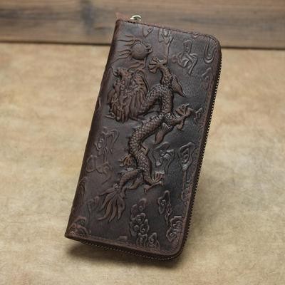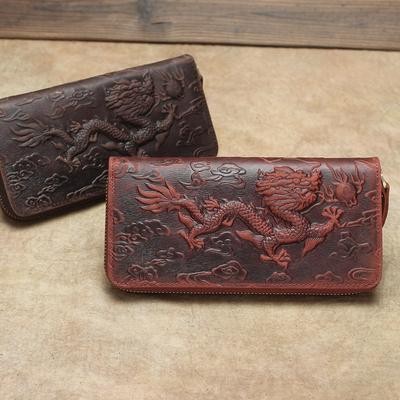 титульная страница > Сумки и чемоданы > Ретро Лошадь Кожа Тисненый Кошелек 2021 Новый Дракон Узор Длинные Мужчины Кошельки Ручной Работы Кор